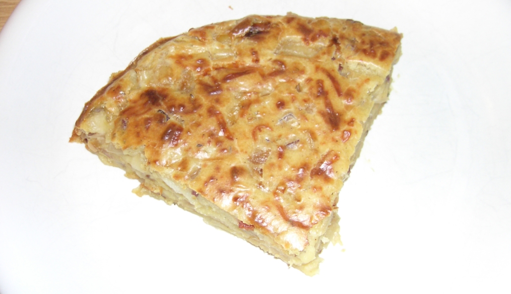 Meine Mitbewohnerin hat letztens auch diese Variante des Zwiebelkuchens mit Blätterteig gemacht, aber in einer vegetarischen Variante ausprobiert und den Speck einfach weggelassen (und stattdesssen noch mehr Zwieben reingemacht) und statt Gouda frisch geriebenen Bergkäse rein getan, der dem Zwiebelkuchen einen würzigen Geschmack verliehen hat. Es war so lecker, dass wir uns auch als Nicht-Vegetarier über den Zwiebelkuchen hergemacht haben :).