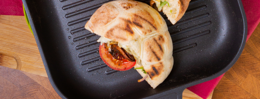 Pilz-Shawarma im Pitabrot in der Gundel Grillpfanne