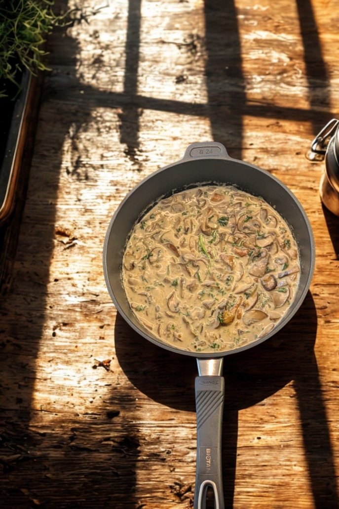 Erlebe, wie cremige Rahmschwammerl und Brezenknödel perfekt gelingen – mit der richtigen Pfanne.