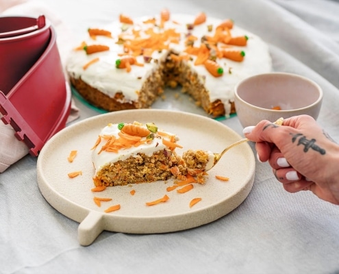 Dieser aromatische Karottenkuchen überzeugt mit einem lockeren Teig, geriebenen Möhren und einer milden Frischkäsecreme als Topping. Durch Nüsse und Gewürze bekommt der Kuchen ein besonders intensives Aroma und bleibt angenehm saftig.