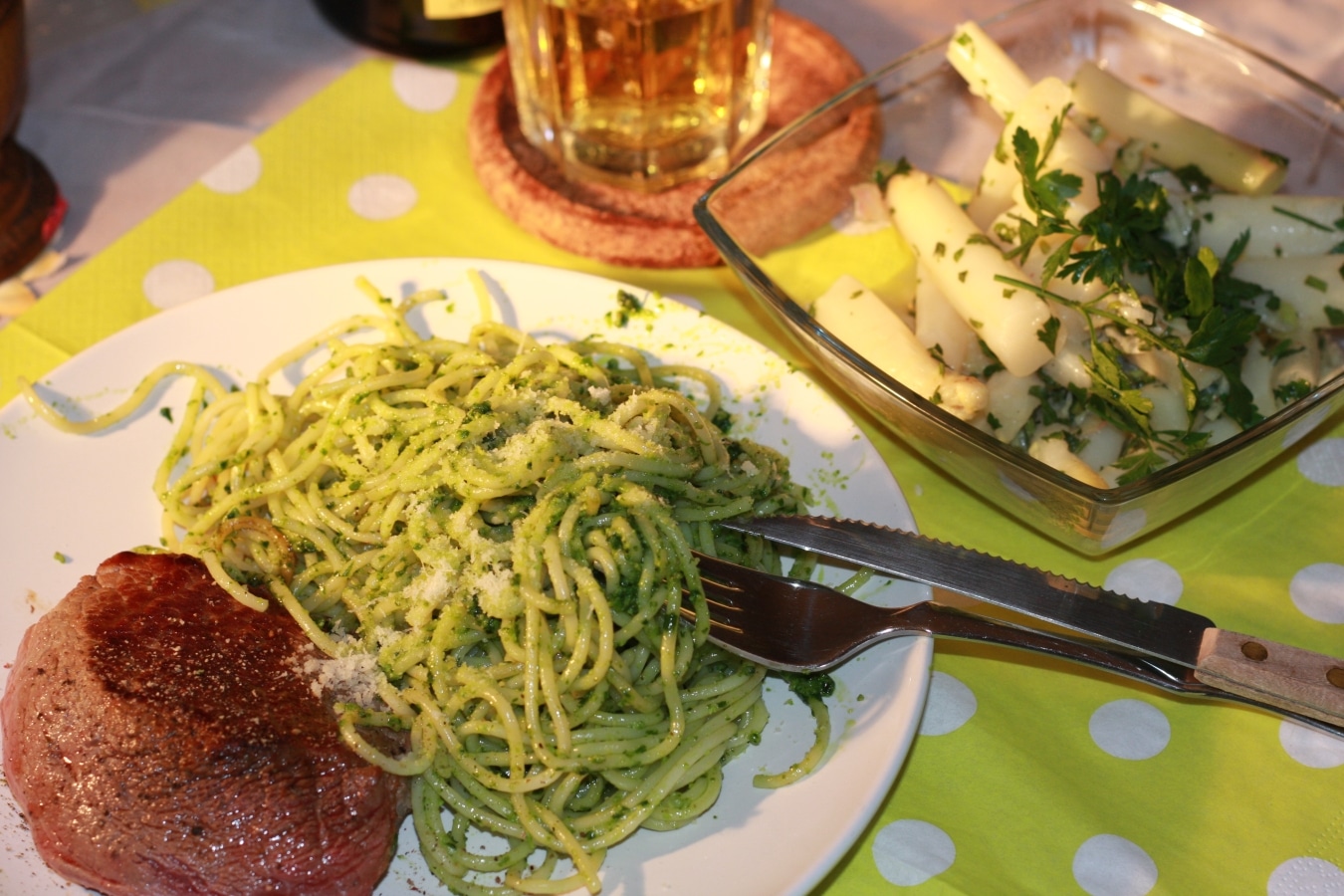 Spaghetti mit Bärlauchpesto und warmer Spargelsalat